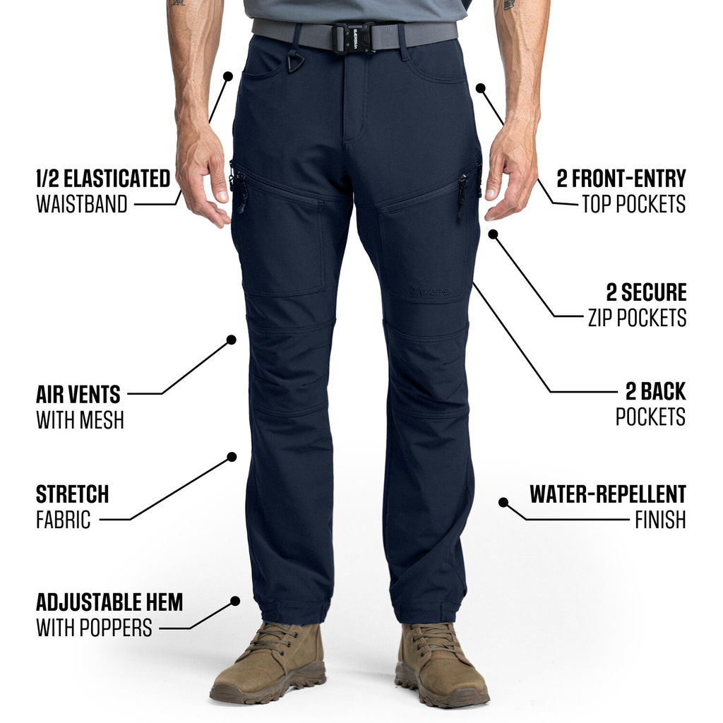 Choose the original BÆRSkin Cargo Pants with 2x air vents on the thighs, or get the New 2-in-1 Zip Off Cargo Pants that convert into shorts in seconds for extra versatility.